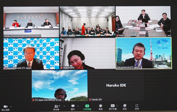 亞太智能交通協(xié)會(huì)秘書處與中國(guó)組委會(huì)舉行第二次高級(jí)別線上會(huì)議現(xiàn)場(chǎng)。蘇州交通局供圖