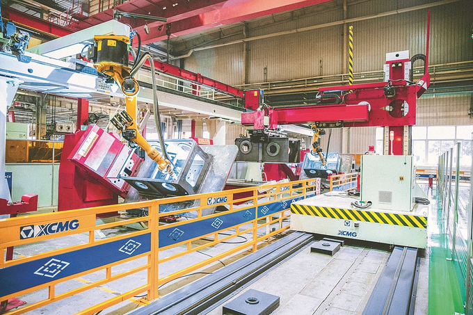 通過(guò)高質(zhì)量推進(jìn)“智改數(shù)轉(zhuǎn)”,徐工重型的5G全價(jià)值鏈智能工廠已建立4個(gè)數(shù)字化車間、10條智能產(chǎn)線,其中結(jié)構(gòu)焊接智能線機(jī)器人焊達(dá)率達(dá)85%以上。公司先后獲評(píng)全國(guó)首批智能制造標(biāo)桿企業(yè)、入選江蘇省首批智能制造示范工廠、智能制造工廠成熟度獲評(píng)四級(jí)等。最近5年,徐工攻克近千項(xiàng)關(guān)鍵核心技術(shù),突破一批關(guān)鍵核心零部件,把全球最大噸位全地面起重機(jī)從1200噸提升到2600噸。