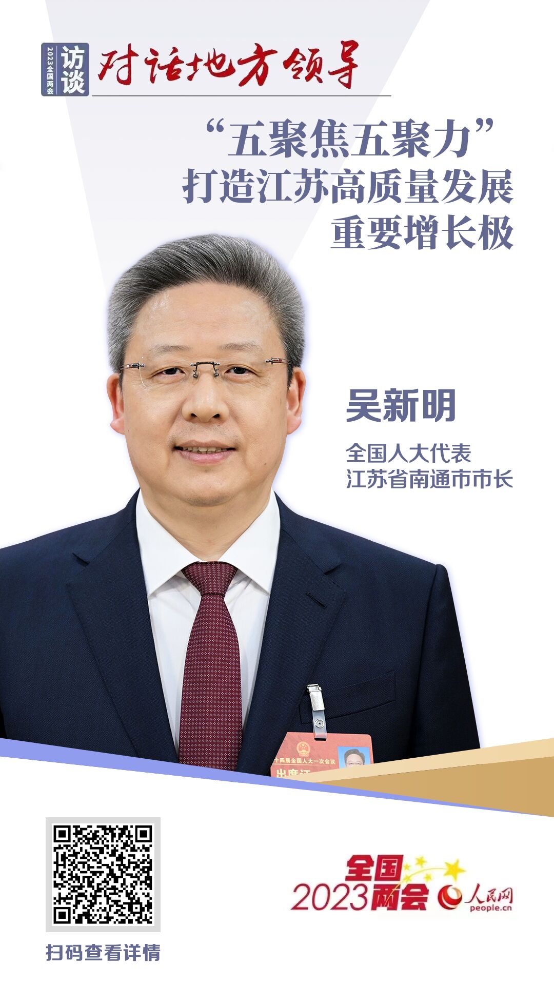 今年是全面貫徹黨的二十大精神的開局之年。政府工作報告指出,黨的二十大勝利召開,描繪了全面建設(shè)社會主義現(xiàn)代化國家的宏偉藍圖。如何全面貫徹落實黨中央決策部署,扎實推進中國式現(xiàn)代化,是社會各界關(guān)注的焦點。新時代下新境界,新征程上新實踐。為生動展現(xiàn)各地踔厲奮發(fā)、昂揚向上、創(chuàng)新實干的精神面貌,人民網(wǎng)推出兩會訪談欄目《對話地方領(lǐng)導》,全國人大代表、江蘇省南通市市長吳新明應邀接受了人民網(wǎng)專訪。