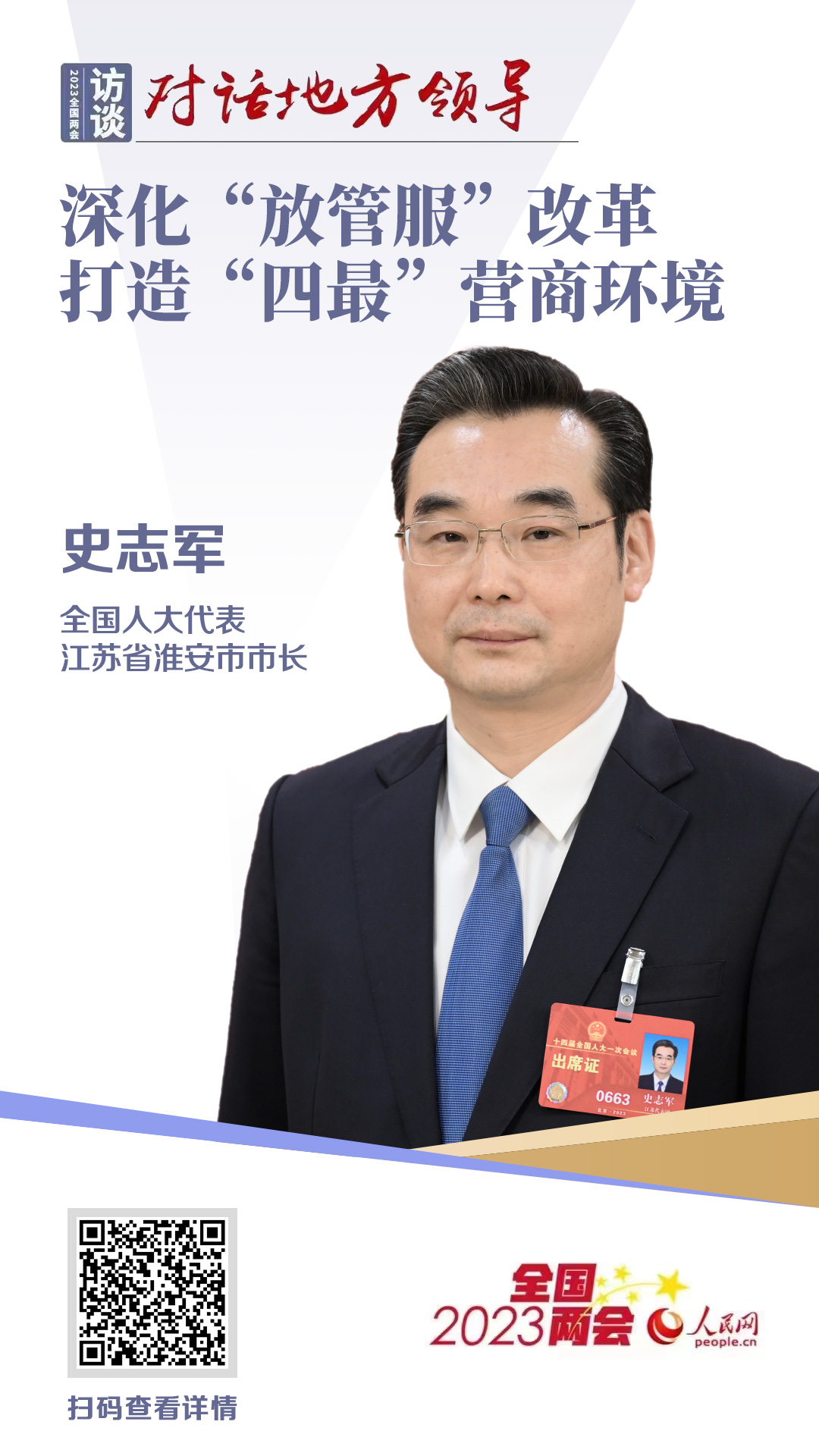 今年是全面貫徹黨的二十大精神的開局之年。政府工作報告指出,加快建設(shè)全國統(tǒng)一大市場,建設(shè)高標準市場體系,營造市場化法治化國際化營商環(huán)境。營商環(huán)境建設(shè)是社會各界關(guān)注的焦點,也是各地政府發(fā)力的重點。新時代下新境界,新征程上新實踐。為生動展現(xiàn)各地踔厲奮發(fā)、昂揚向上、創(chuàng)新實干的精神面貌,人民網(wǎng)推出兩會訪談欄目《對話地方領(lǐng)導》,全國人大代表、江蘇省淮安市市長史志軍應(yīng)邀接受了人民網(wǎng)專訪。