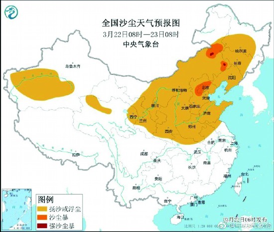 22日上午,“長春下泥”登上微博熱搜。風(fēng)卷狂沙起,今年來北方最大規(guī)模沙塵天氣來襲,22日,北京、天津、河北等地迎來沙塵影響的核心時段。中央氣象臺昨天18時繼續(xù)發(fā)布沙塵暴黃色預(yù)警:22日20時至23日20時,江蘇中北部也將受到沙塵影響,有揚沙或浮塵天氣。