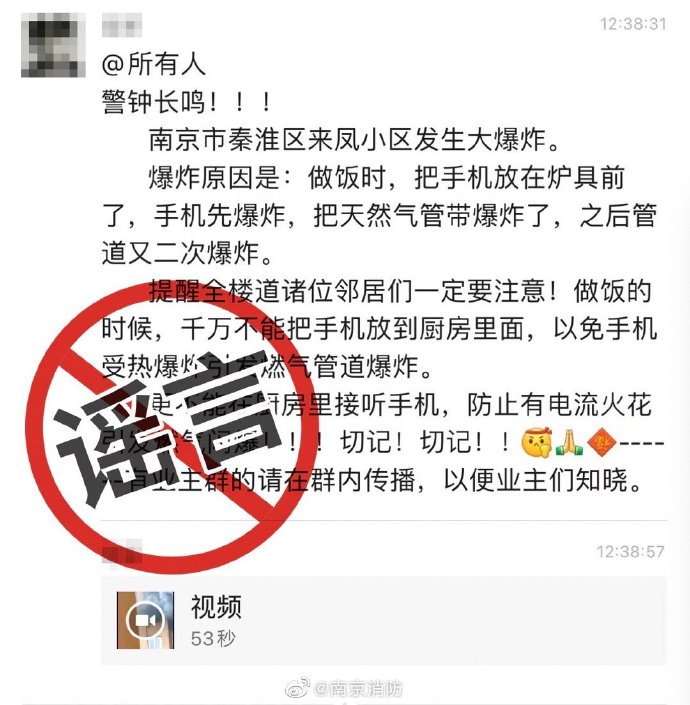 人民網(wǎng)南京4月23日電 近期,網(wǎng)傳南京市秦淮區(qū)來(lái)鳳小區(qū)發(fā)生大爆炸。爆炸原因是“做飯時(shí),把手機(jī)放在爐具前了,手機(jī)先爆炸,把天然氣管帶爆炸了,之后管道又二次爆炸”,該信息在網(wǎng)上迅速傳播,并配有火災(zāi)視頻。