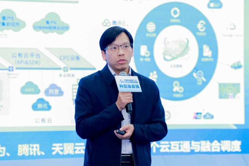 北京郵電大學(xué)教授、紫金山實驗室未來網(wǎng)絡(luò)研究中心主任黃韜分享未來網(wǎng)絡(luò)技術(shù)。人民網(wǎng) 張玉峰攝
