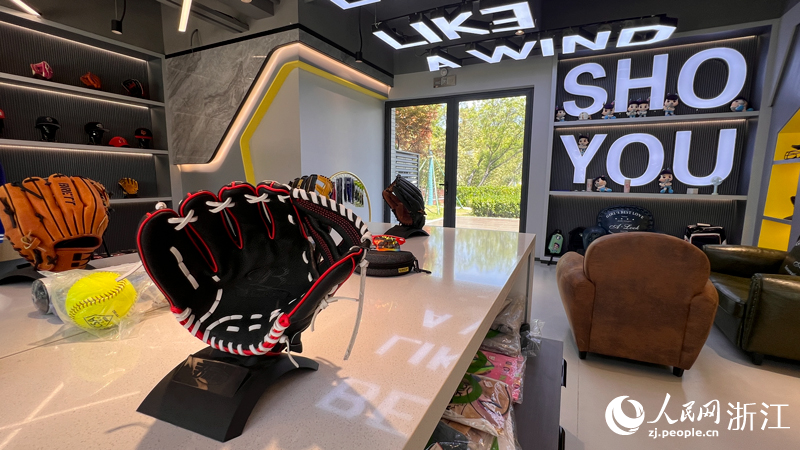 棒球文化體驗(yàn)館商店帶動周邊運(yùn)動產(chǎn)品銷售。人民網(wǎng) 艾宇韜攝