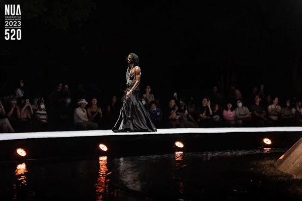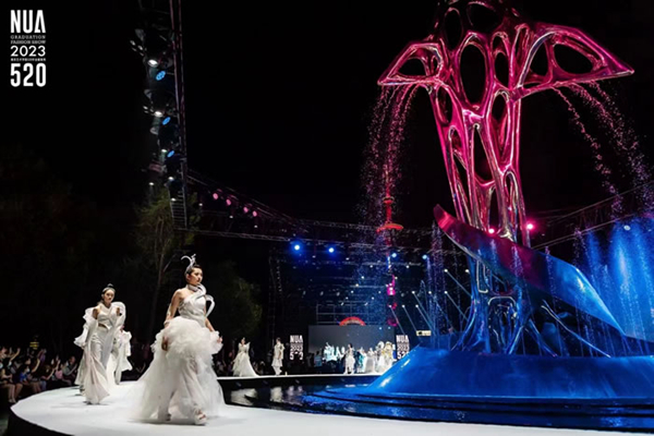 作為今年鼓樓青年藝術(shù)季的重頭戲之一,2023年南藝520畢業(yè)展演嘉年華時(shí)裝秀又如約而至,更是讓現(xiàn)場(chǎng)氣氛達(dá)到了巔峰。今年,主辦方延續(xù)2021年時(shí)裝秀的精彩展陳,百余米超長(zhǎng)T臺(tái)更加驚艷耀眼,160位專業(yè)模特在臺(tái)上展示了南藝學(xué)子154件服裝設(shè)計(jì)作品,圍繞“藝科融通向未來”這一主題,呈現(xiàn)出既傳統(tǒng)又現(xiàn)代的時(shí)尚面貌。絕美的服飾、絢爛的燈光,搭配上如夢(mèng)如幻的街景、風(fēng)情萬種的秦淮河,連續(xù)兩個(gè)晚上帶來三場(chǎng)精彩絕倫的視覺盛宴,更是將藝術(shù)的魅力與超前的理解帶給每一位觀眾。