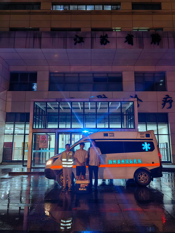機(jī)場救護(hù)車輛趕赴無錫市人民醫(yī)院。揚泰機(jī)場供圖