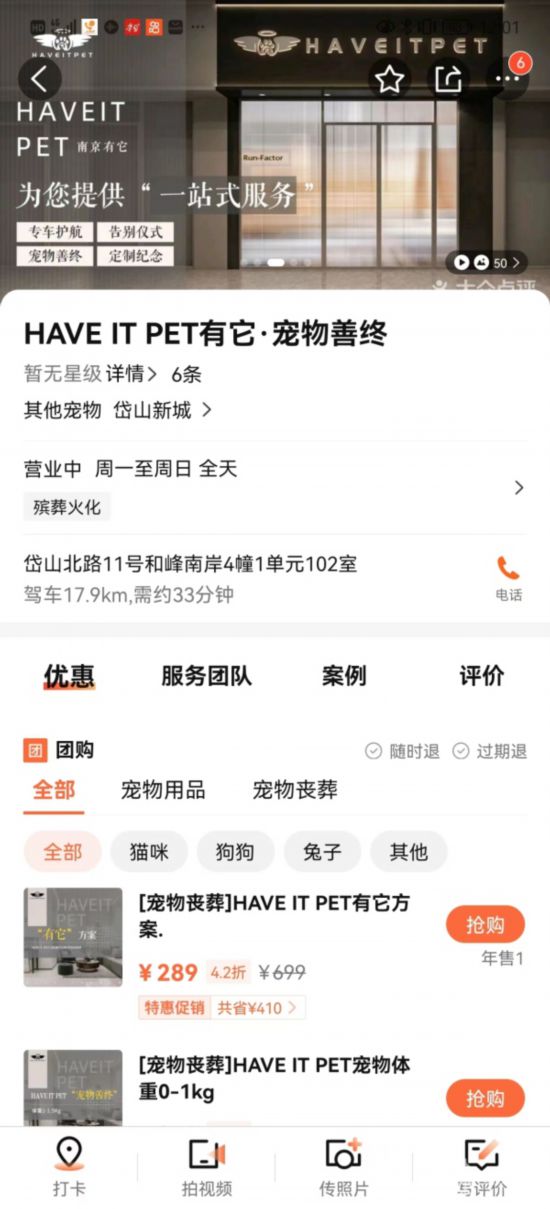 那么,小區(qū)業(yè)主反映的這家寵物殯葬店具體從事哪些業(yè)務(wù)?有沒有取得相關(guān)部門頒發(fā)的證照呢?記者探訪發(fā)現(xiàn),和峰南岸小區(qū)4號樓樓下的這家門店只有英文門頭、沒有中文標(biāo)識,記者在營業(yè)執(zhí)照上看到,其注冊名稱為“江蘇南京市有它寵物服務(wù)有限責(zé)任公司”,經(jīng)營范圍為動物無害化處理以及寵物食品用品零售等常規(guī)服務(wù)。小區(qū)業(yè)主表示,無論是店內(nèi)的裝修風(fēng)格,還是店家在電商平臺上打出的廣告,都能看出這家所謂的寵物服務(wù)店實(shí)際上就是一家名副其實(shí)的“寵物殯葬店”。