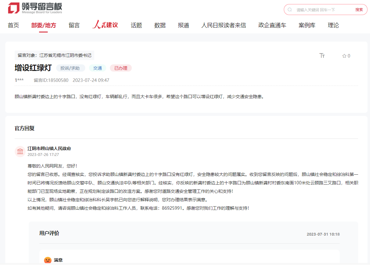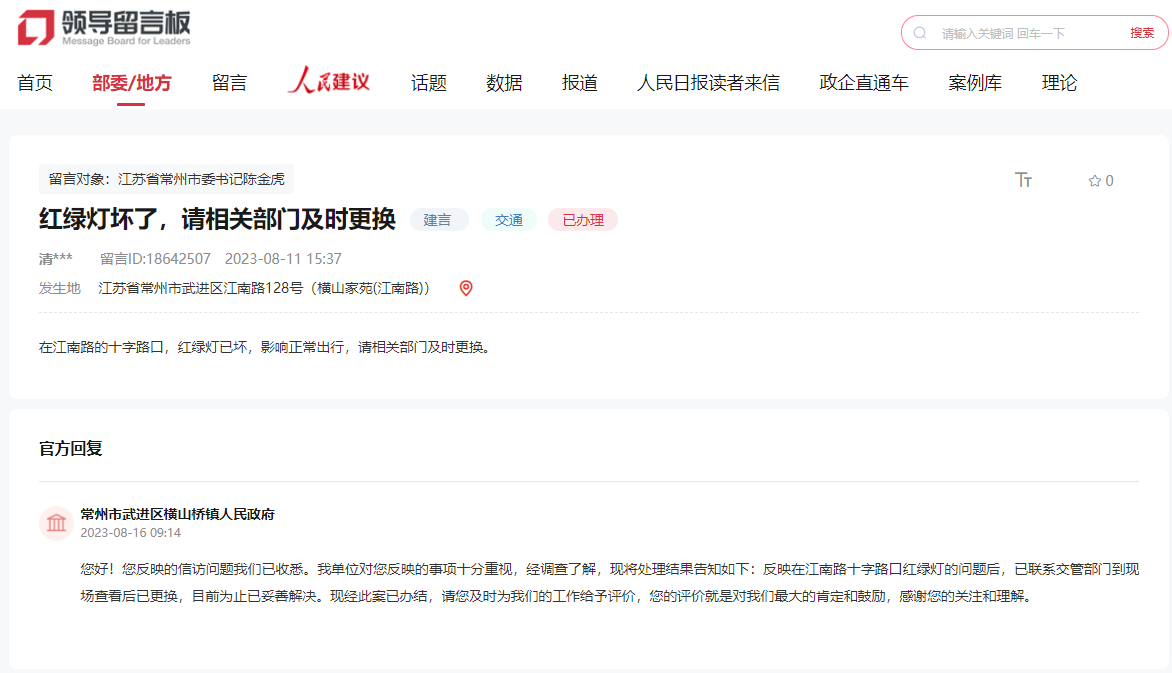 有回音丨一條留言,江蘇網(wǎng)友關(guān)心的紅綠燈缺失損壞問(wèn)題獲回應(yīng)解決