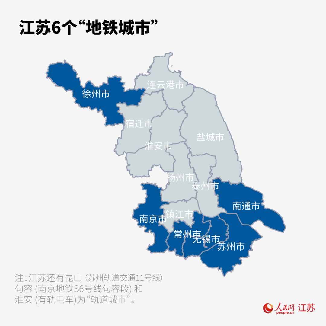 去年11月,南通城市軌道交通1號線一期開通運營,南通成為全國第43個、江蘇省第6個“地鐵城市”。至此,江蘇“地鐵城市”數(shù)量全國第一。若將統(tǒng)計口徑擴大到軌道交通,則江蘇的“軌道城市”為9個,也居全國首位。