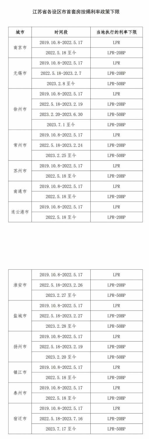 江蘇省各設(shè)區(qū)市首套房按揭利率政策下限公布