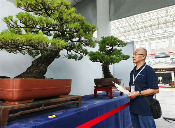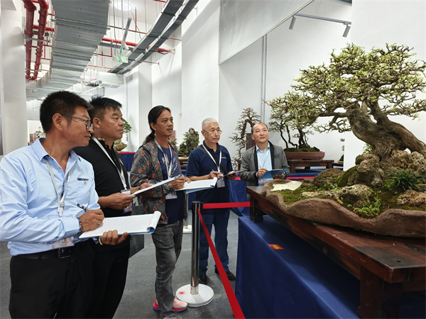 9月25日,一批精美的盆景落座沭陽縣華東花木大世界A館,參加2023國際盆景大會年度主展覽。由46名國際盆景大師組成的評委組的評委,正分別對盆景進行打分,以便最終評出金、銀、銅獎。