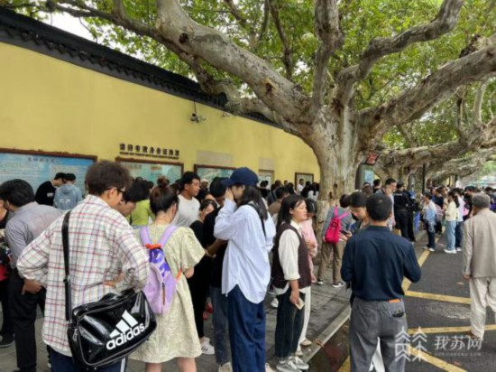 上午11點(diǎn)左右,南京總統(tǒng)府景區(qū)售票處外聚集大量游客,現(xiàn)場(chǎng)大喇叭一直提示:當(dāng)天門(mén)票已售罄。