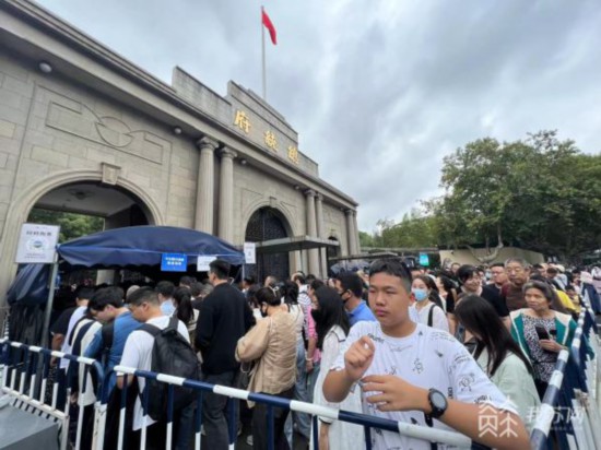 此時(shí),景區(qū)外電子大屏顯示:南京總統(tǒng)府景區(qū)日最大承載量3.4萬(wàn)人,瞬時(shí)最大承載量6400人。中午11點(diǎn)05分,景區(qū)實(shí)時(shí)在園人數(shù)7168人,已達(dá)到擁擠狀態(tài),景區(qū)已采取流控措施。