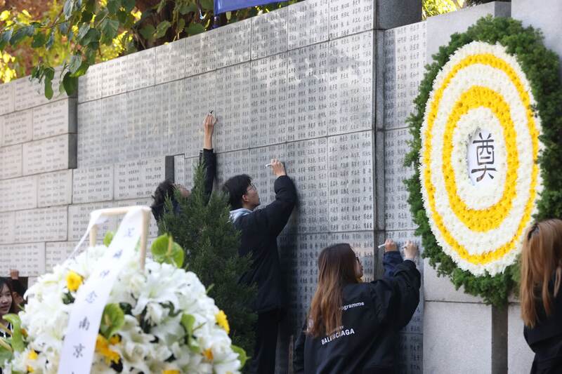 12月3日,在第十個南京大屠殺死難者國家公祭日即將來臨之際,侵華日軍南京大屠殺遇難同胞紀念館在南京大屠殺死難者名單墻前舉辦家祭活動,南京大屠殺幸存者代表、遇難同胞遺屬代表、青少年學生代表等參加?;顒由?,儀仗隊向南京大屠殺遇難同胞敬獻花籃,青少年學生代表朗讀遇難同胞的姓名、遇難年齡、遇難地點、遇難方式,南京大屠殺幸存者代表、遇難同胞遺屬代表、青少年學生代表等為南京大屠殺死難者名單墻上的名單描新。