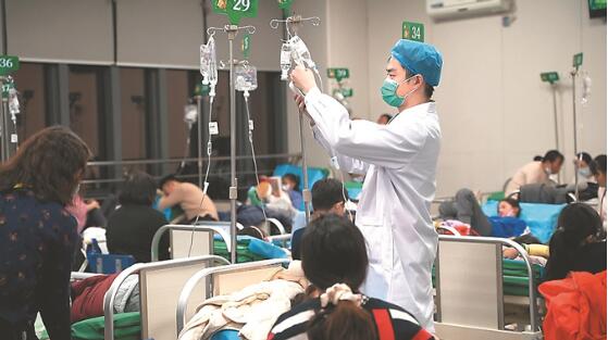 為應對就診高峰,南京市第一醫(yī)院及時召開防控會議,迅速增加診室和醫(yī)生的人手,急診內(nèi)科由原先的2個診室、3名醫(yī)生,增加到現(xiàn)在的3個診室,白天5名醫(yī)生、晚上7名醫(yī)生值班。與此同時,急診醫(yī)學科擴充了收費和檢驗人員,增設第二輸液室,在收費、化驗、輸液等環(huán)節(jié)減少堵點。