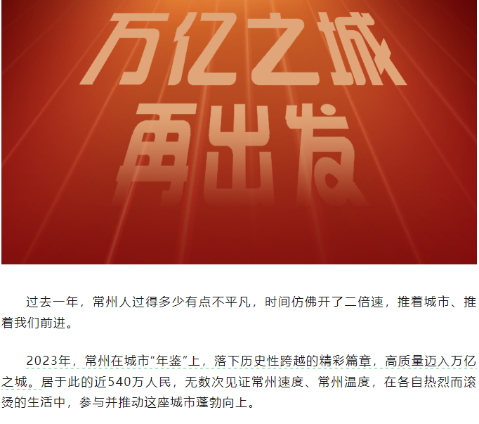 近日,微信公眾號(hào)“常州發(fā)布”發(fā)文稱,2023年,常州高質(zhì)量邁入萬(wàn)億之城。