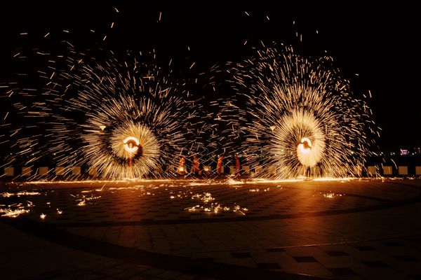 非遺傳人表演打鐵花。蘇州高鐵新城供圖