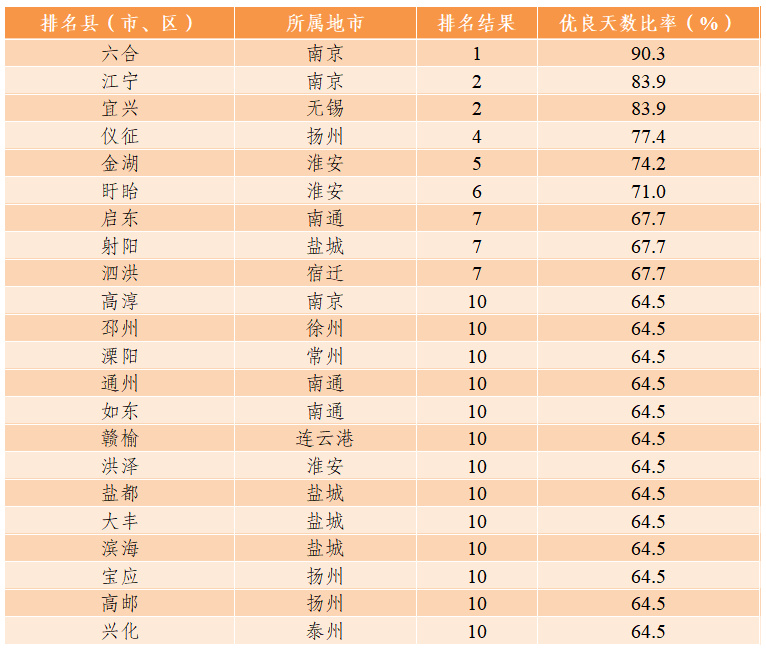 優(yōu)良天數(shù)比率相對較好的前10位(1—10名)依次是: