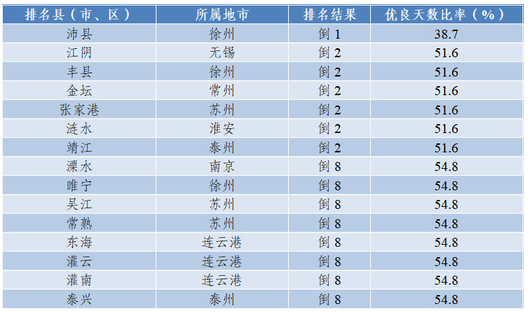 江蘇省生態(tài)環(huán)境廳3月2日發(fā)布54個縣(市、區(qū))1月空氣質(zhì)量狀況排名。
