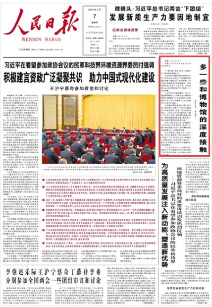 人民日?qǐng)?bào)丨習(xí)近平總書記參加江蘇代表團(tuán)審議:多一些和博物館的深度接觸