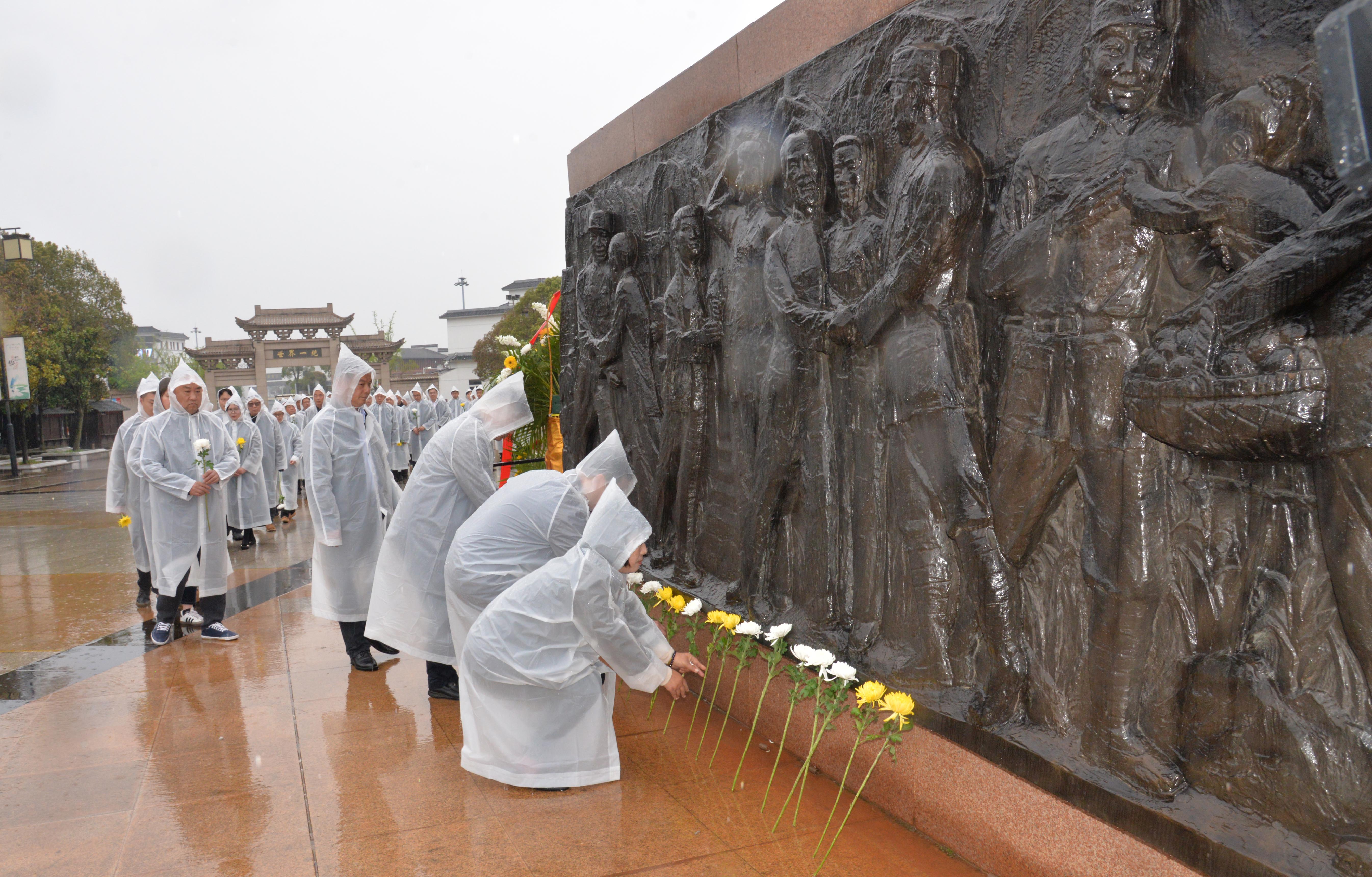 隨后,全體人員緩步繞行紀念碑一周,瞻仰紀念碑,并敬獻鮮花,祭奠英雄先烈,緬懷英雄功績,表達崇敬之情。