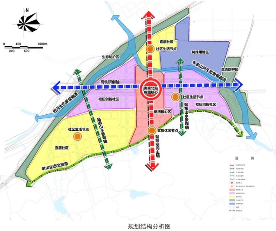 4月11日,《南京江北新區(qū)控制性詳細規(guī)劃》NJJBb070規(guī)劃管理單元批后發(fā)布,該單元即南京北站樞紐經濟區(qū)。南京北站樞紐經濟區(qū)總面積為12.6平方千米,規(guī)劃構建“一核、一帶、兩廊、四軸、四節(jié)點、八片區(qū)”的空間布局結構。