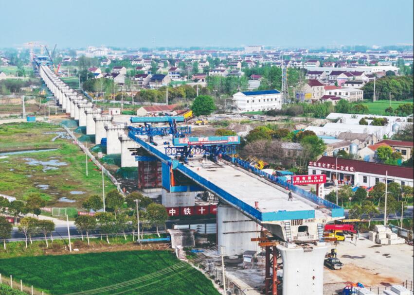 4月15日凌晨,滬渝蓉高鐵通泰揚特大橋跨X208縣道連續(xù)梁順利合龍,標志著項目建設取得突破性進展。滬渝蓉高鐵線路總長約2100公里,全線設計時速350公里,是國家“八縱八橫”高鐵骨干通道之一。(顧繼紅 李若愚)