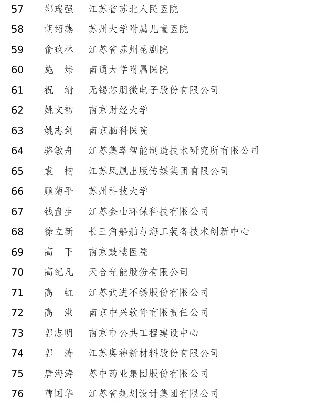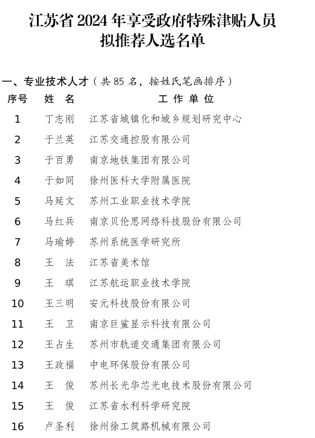 江蘇省2024年享受政府特殊津貼人員擬推薦人選名單公示 共120人