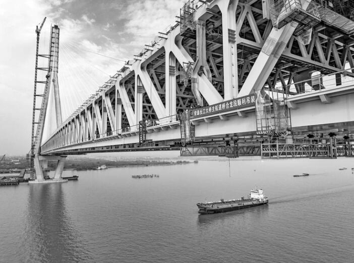 大橋主航道橋合龍段于5月29日順利吊裝到位,此后的10天時間,歷經單側梁段栓焊連接、斜拉索掛設及張拉、全橋鋼桁梁頂推調位、合龍口沖釘打入、高栓施擰、焊接等多道工序,至今日實現“毫米級”精準合龍,主航道橋主體工程施工全部完成。都說看花容易繡花難,這么個聳立江面的大家伙想要實現高質量“縫合”,把合龍精度控制在毫米級別其難度可想而知。