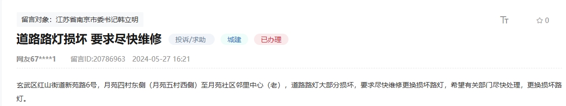 辦實(shí)事丨路燈不亮或燈光太亮,江蘇多地網(wǎng)友留言后獲解決