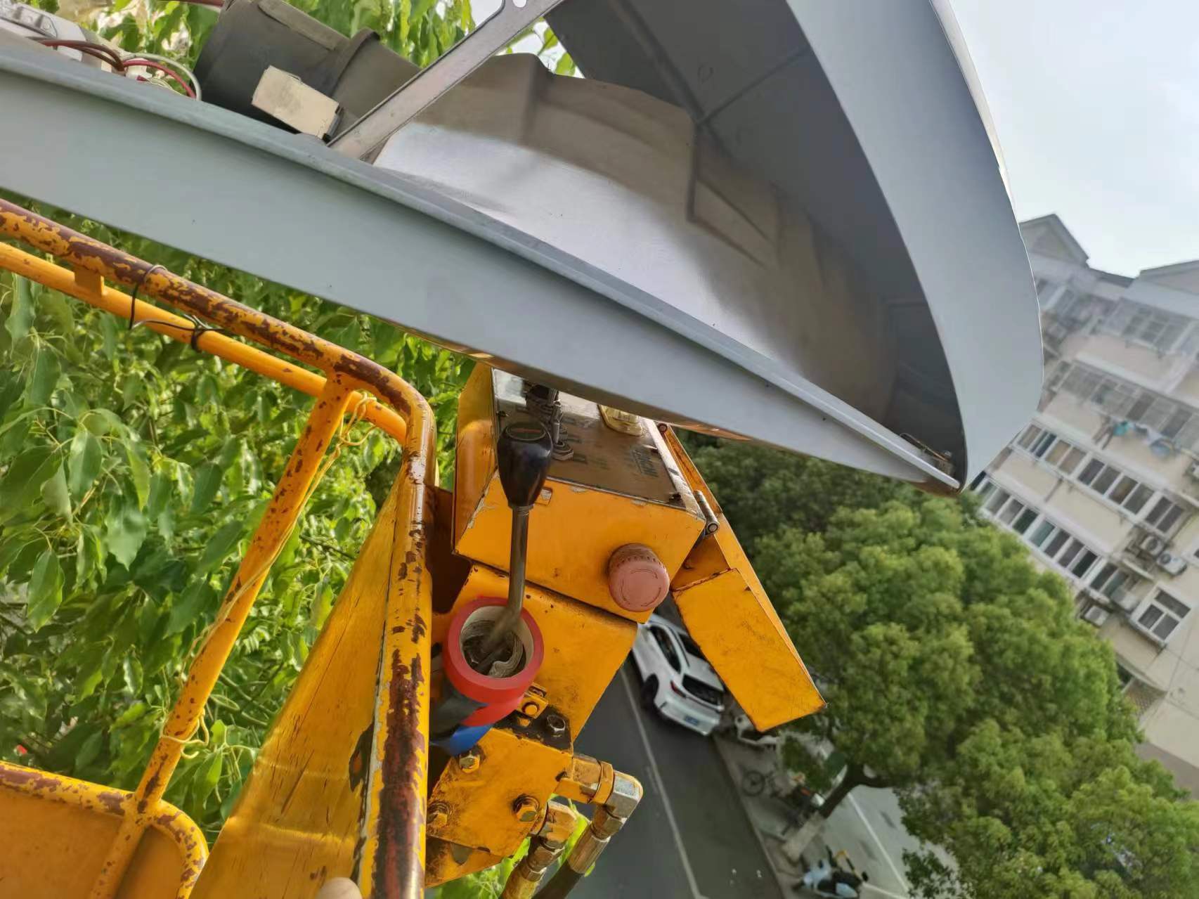 工作人員對(duì)路燈燈具照射角度進(jìn)行調(diào)整。鹽城市住建局 供圖