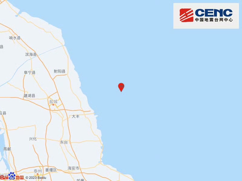 鹽城大豐區(qū)海域發(fā)生3.4級地震 震源深度17千米