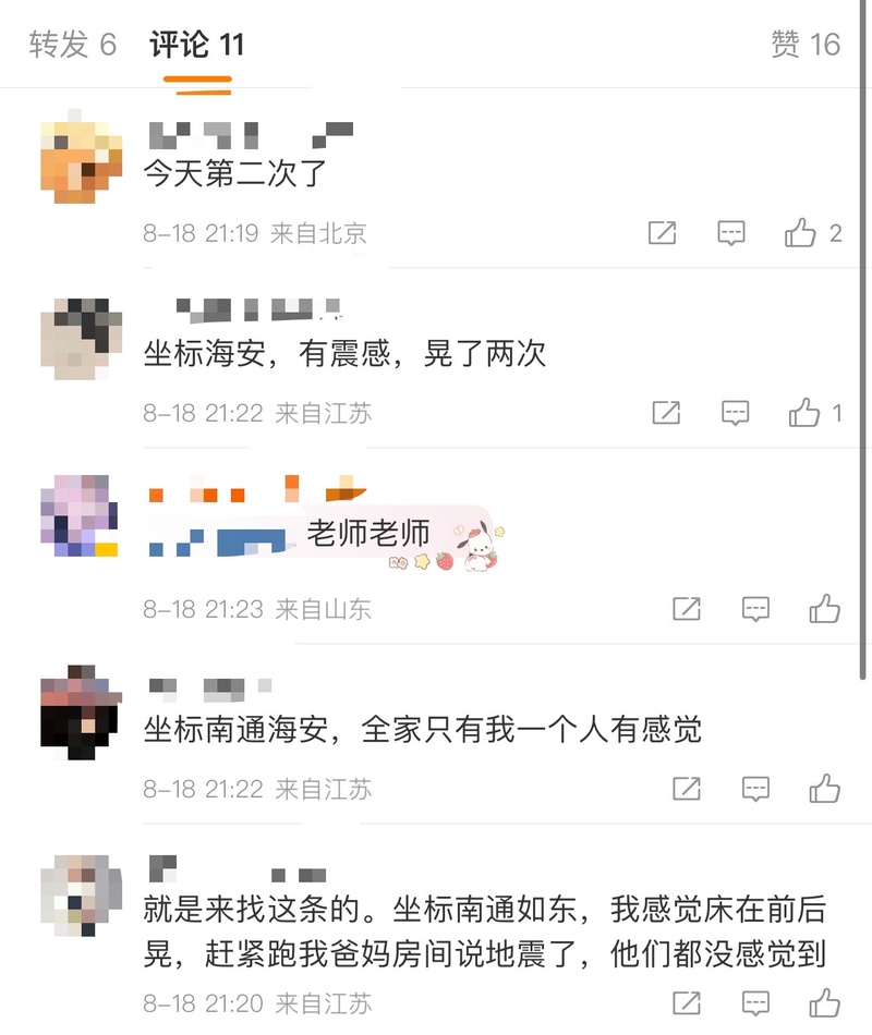 地震發(fā)生后,多地網(wǎng)友表示有震感。(楊易臻)
