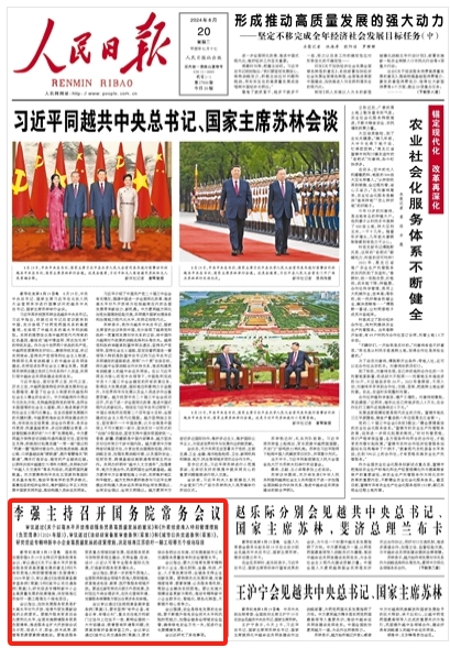 《人民日?qǐng)?bào)》2024年8月20日 01 版 版面截圖