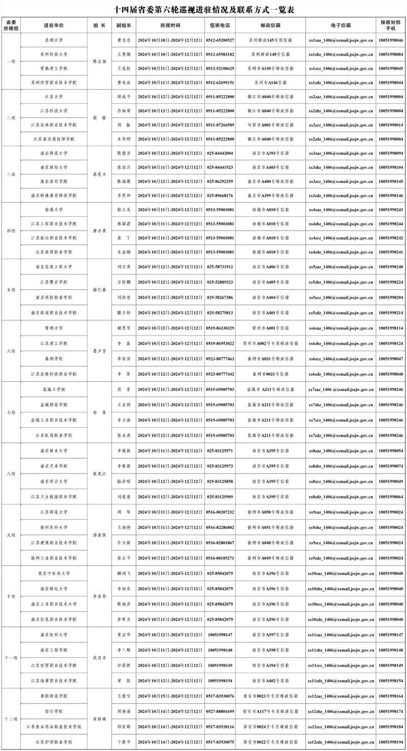 十四屆江蘇省委第六輪巡視完成進駐 聯(lián)系方式公布