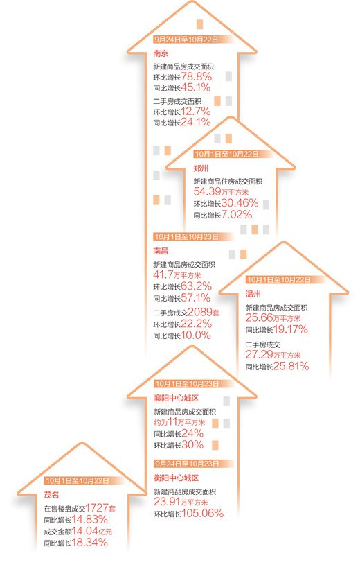 市場(chǎng)活躍態(tài)勢(shì)同樣發(fā)生在一些三、四線城市。10月1日至22日,溫州網(wǎng)簽新建商品房25.66萬(wàn)平方米,同比增長(zhǎng)19.17%;二手住房交易27.29萬(wàn)平方米,同比增長(zhǎng)25.81%。