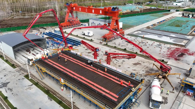 濰宿高鐵宿遷段首榀預(yù)制箱梁完成澆筑