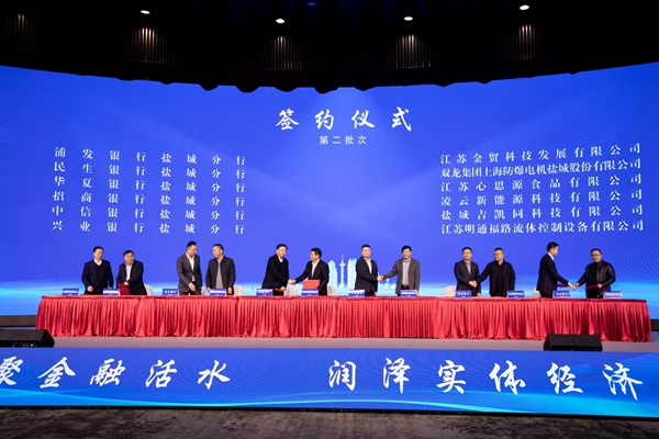 銀企合作簽約儀式是本次對接活動的重頭戲。簽約共分四批進行,工商銀行、農業(yè)銀行等多家銀行與江蘇鹽電閥門有限公司等102家小微企業(yè)簽訂合作協(xié)議達成融資協(xié)議近14億元,提供風險保障7000萬元,涉及科創(chuàng)、綠色、農業(yè)、制造業(yè)等各個領域,這些資金將助力企業(yè)技術研發(fā)、擴大生產(chǎn)、優(yōu)化產(chǎn)品結構,推動轉型升級與增強競爭力。