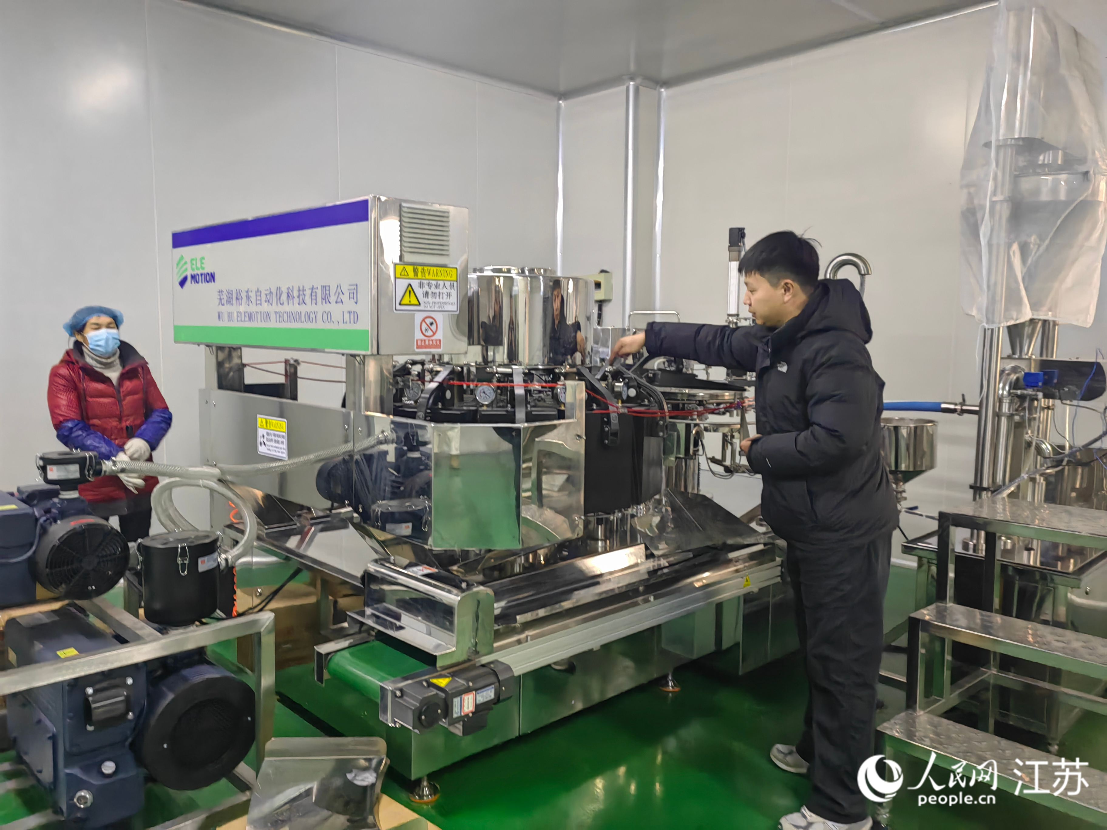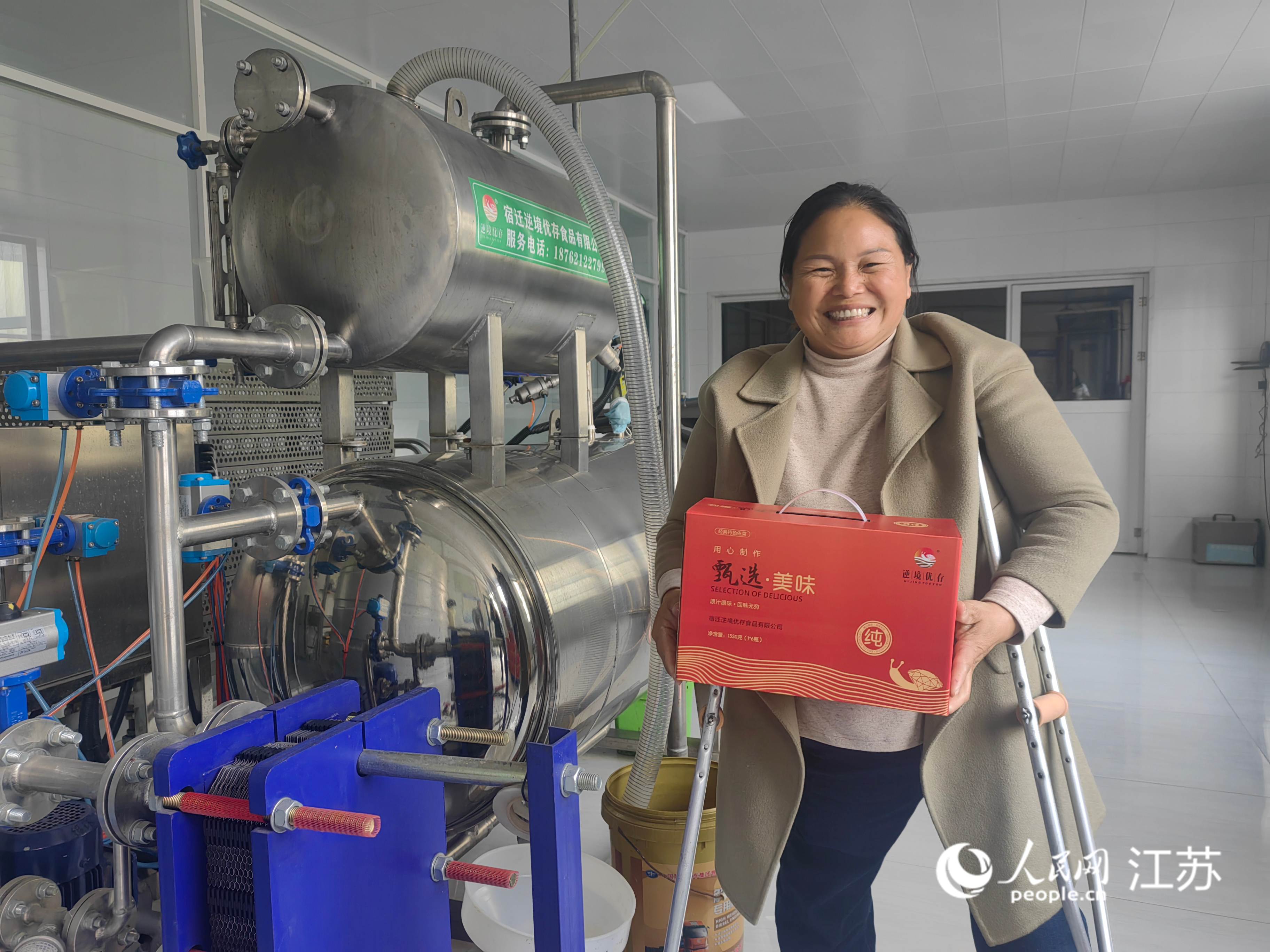 廠子不大,連同11名殘疾人在內(nèi),也就20來(lái)名工人,她自嘲是個(gè)“小作坊”。不過(guò),沭陽(yáng)縣返鄉(xiāng)創(chuàng)業(yè)園西圩園區(qū)內(nèi),4000平方米的新廠房眼下正在調(diào)試設(shè)備,春節(jié)后生產(chǎn)就能大變樣?!艾F(xiàn)在的腌制車(chē)間地方受限,產(chǎn)能時(shí)常跟不上,鄉(xiāng)里知道后,3個(gè)月前主動(dòng)幫著找廠房?!彼f(shuō)。