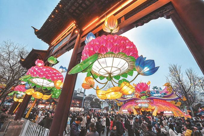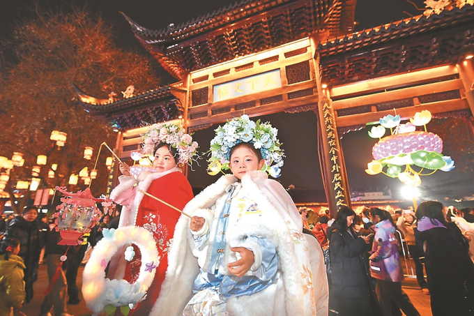 2月12日是元宵節(jié),南京市夫子廟熱鬧非凡,游客在秦淮河畔逛燈會(huì)賞花燈,歡度佳節(jié)。邵丹 萬程鵬 攝