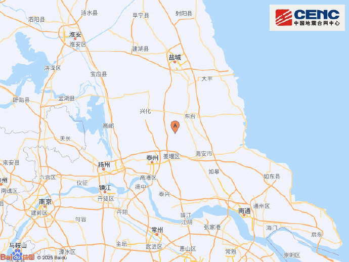 泰州興化市發(fā)生3.7級地震 震源深度9千米