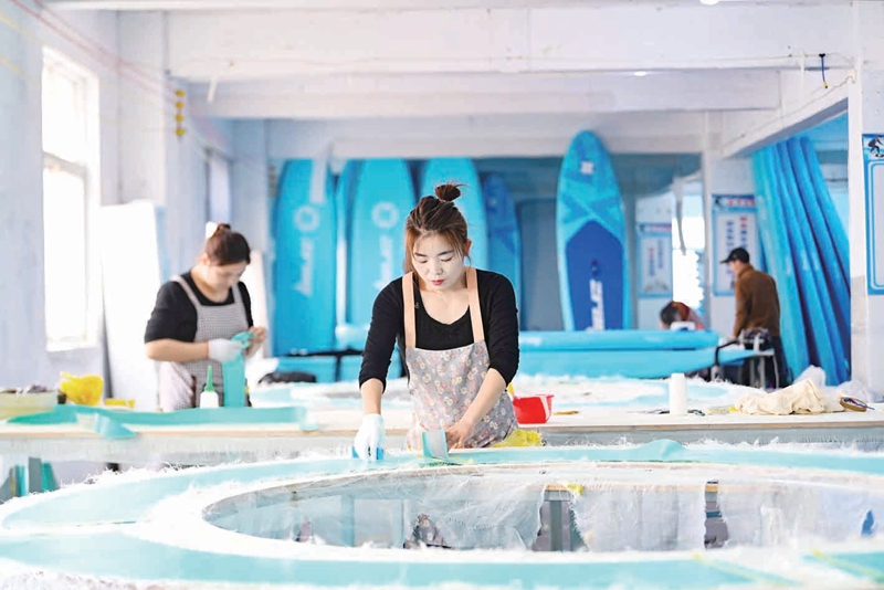 據(jù)悉,該公司主要從事皮劃艇等水上用品的生產(chǎn)銷售,年可生產(chǎn)皮劃艇10萬(wàn)個(gè),實(shí)現(xiàn)產(chǎn)值5000余萬(wàn)元,年納稅100萬(wàn)元。(胡威 攝)