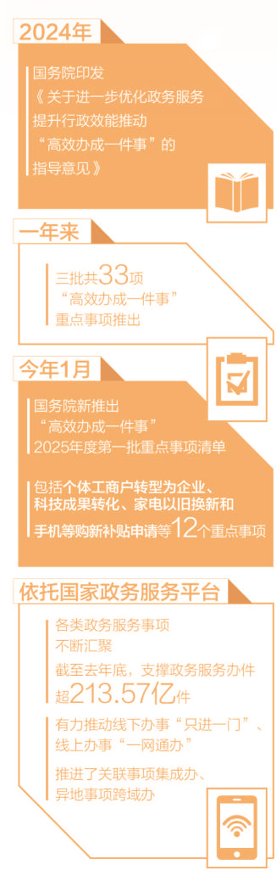 政府工作報(bào)告提出,“健全‘高效辦成一件事’重點(diǎn)事項(xiàng)清單管理和常態(tài)化推進(jìn)機(jī)制,完善覆蓋全國(guó)的一體化在線政務(wù)服務(wù)平臺(tái)。”