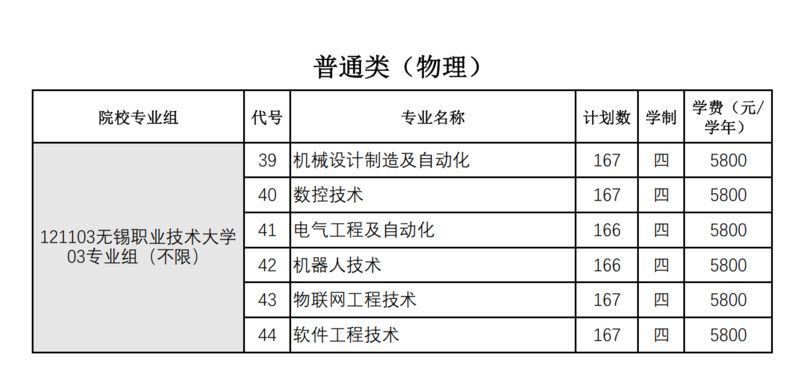 今年,無錫職業(yè)技術(shù)大學(xué)首批設(shè)置機(jī)械設(shè)計(jì)制造及自動化、數(shù)控技術(shù)、電氣工程及自動化、機(jī)器人技術(shù)、物聯(lián)網(wǎng)工程技術(shù)、軟件工程技術(shù)等6個職業(yè)本科專業(yè),共招生1000人,全部面向江蘇省內(nèi)。