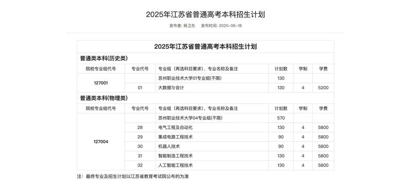 蘇州職業(yè)技術(shù)大學(xué)今年首批設(shè)置大數(shù)據(jù)與會計(jì)、電氣工程及自動化、集成電路工程技術(shù)、機(jī)器人技術(shù)、智能制造工程技術(shù)、人工智能工程技術(shù)等6個職業(yè)本科專業(yè),共招生700人。其中,570個招生計(jì)劃面向物理類考生,130個計(jì)劃面向歷史類考生。