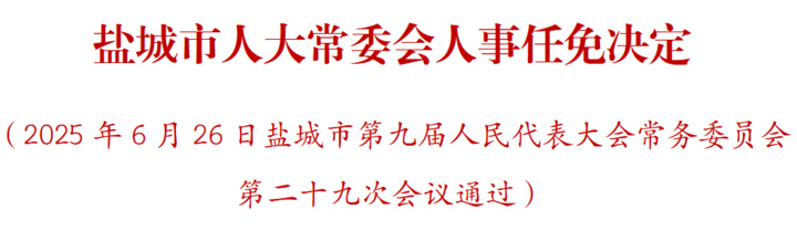 6月26日,江蘇鹽城、鎮(zhèn)江兩市人大常委會(huì)相繼發(fā)布最新人事任免決定。其中,鹽城市人大常委會(huì)決定任命商建明為鹽城市副市長(zhǎng)。