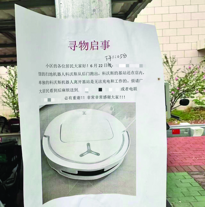 原題:掃地機器人“離家出走”,主人張榜尋找