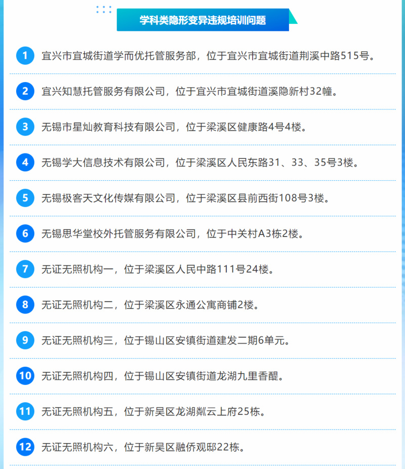 【無錫】12家機(jī)構(gòu)進(jìn)行學(xué)科類隱形變異違規(guī)培訓(xùn)