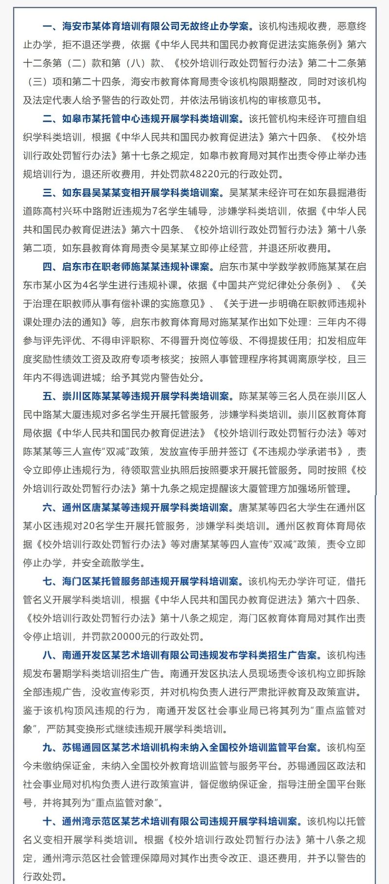 原題:最新通報(bào)!江蘇多地多家校外培訓(xùn)機(jī)構(gòu)違規(guī)被查處整改