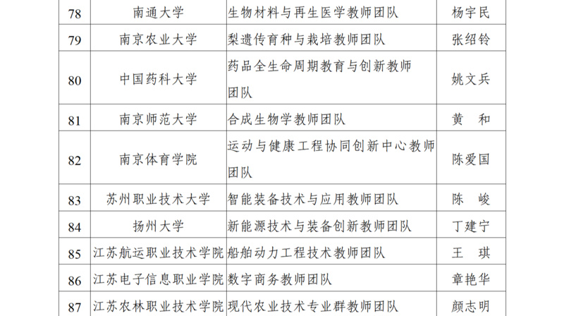 8月19日,教育部發(fā)布《關(guān)于第四批“全國高校黃大年式教師團(tuán)隊”創(chuàng)建示范活動擬入圍名單的公示》。其中,江蘇有南京大學(xué)“水污染控制產(chǎn)教融合科教團(tuán)隊”等20個教師團(tuán)隊入選。